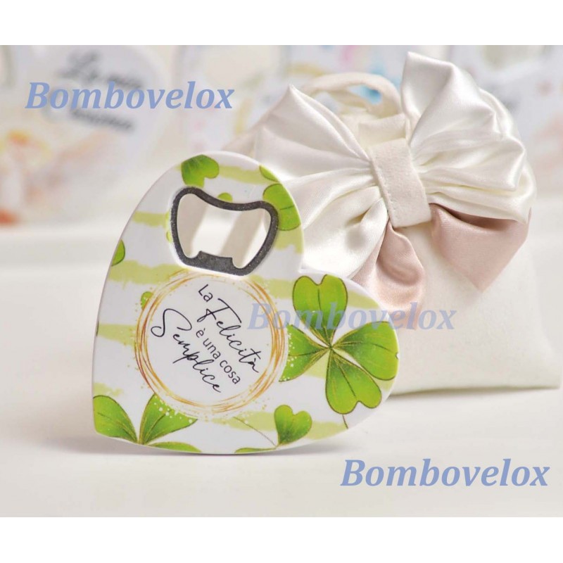 Stappacuore cavatappi a forma di cuore decoro quadrifoglio 8,5x8cm