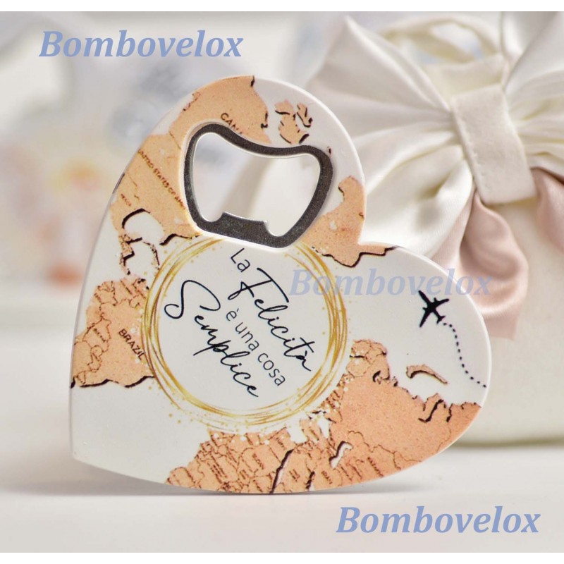 Stappacuore cavatappi a forma di cuore decoro viaggi 8,5x8cm